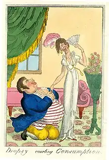 L'hydropisie est souvent mentionnée dans les comédies de Molière, la plus fameuse est celle du Malade imaginaire, acte III, scène 5, dans un dialogue médecin-malade où l'hydropisie est le point final d'une énumération comique[33] :