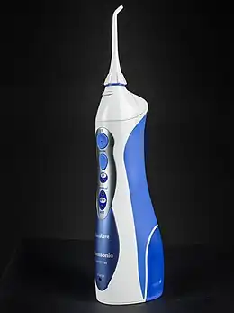 Plus tard, en 1962, le dentiste Gerald Moyer et l'ingénieur John Mattingly, tous deux de Fort Collins, au Colorado, ont inventé le Waterpik. Le Waterpik est doté d'un réservoir intégré et d'un moteur permettant de pomper l'eau d'un embout par impulsions rythmiques[5]. Le Waterpik est aujourd'hui commercialisé par Water Pik, Inc[6].
