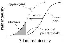 Les blessures peuvent modifier la perception de la douleur. Les sensations douloureuses peuvent devenir plus douloureuses (hyperalgésie) et les sensations normalement inoffensives peuvent devenir douloureuses (allodynie).
