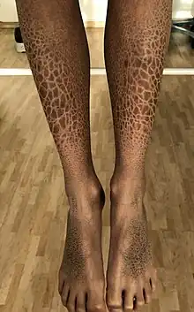 - ↑ Biver-Dalle, C., Gil, H., Méaux-Ruault, N., Mermet-Ginet, I., Aubin, F., Humbert, P., & Magy-Bertrand, N. (2012). Ichtyose acquise et hyperkératose livédoïde palmoplantaire: deux manifestations cutanées initiales atypiques de lupus systémique. La Revue de médecine interne, 33(3), e14-e16