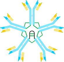 - les IgM qui sont les premiers produits lors d'une infection. Ils sont décavalents et leur avidité pour les antigènes est très grande. Ils ont un rôle majeur dans la formation de complexes immuns ;