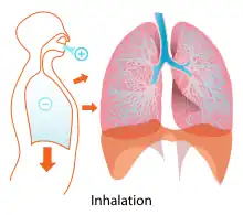 En physiologie et médecine, le mot inhalation désigne de manière générale l'absorption par le nez et les voies respiratoires d'une substance (air, autre gaz, aérosol, poussières en suspension…).