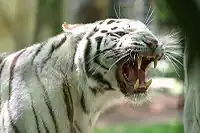 La peur est un état motivationnel inné plaçant l'animal en disposition de fuite, de lutte, ou d'inhibition de l'action[47]. Elle est déclenchée par un stimulus nociceptif (procurant de la douleur), par la perception d'un stimulus associé, par apprentissage, à la douleur ou encore par la perception d'un stimulus déclencheur inné comme un mouvement et un bruit soudain déclenchant le sursaut de peur. Le centre cérébral responsable de ces comportements est l'amygdale[48]. Dans la nature, la fuite est le comportement le plus habituel, la lutte étant un choix alternatif ; bien que cet ordre puisse être modifié chez les prédateurs et chez les animaux venimeux. Lors d'agressions intraspécifiques (entre membres d'une même espèce), la stratégie du bourgeois[49] constitue une norme pratiquement inviolée ; il s'agit, dans cette situation, de la seule stratégie évolutive mathématiquement stable. Cette stratégie consiste à fuir si l'animal n'est pas sur son territoire mais à se battre dans le cas contraire.