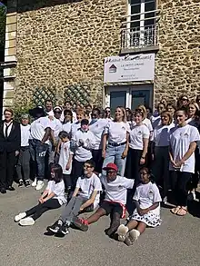 L'institut médico-éducatif Le Petit Orme - Bruno Guillez de Tremblay-en-France avec son personnel et les élèves lors du dévoilement du nouvel emblème.