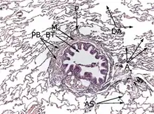 - Le troisième secteur est composé des cloisons conjonctives intralobulaires qui siègent dans les cloisons interalvéolaires[5].