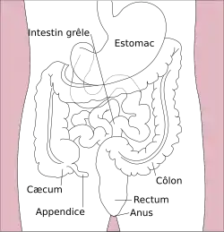 L'intestin grêle est la partie de l'appareil digestif humain située entre l'estomac et le gros intestin (côlon). Il comprend un segment fixe, le duodénum, suivi de deux segments mobiles intrapéritonéaux, le jéjunum puis l'iléon.