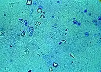- ↑ (en) Jacobsen D, Akesson I, Shefter E, « Urinary calcium oxalate monohydrate crystals in ethylene glycol poisoning », Scandinavian journal of clinical and laboratory investigation, vol. 42, no 3, , p. 231–4 (PMID 7134806)