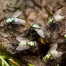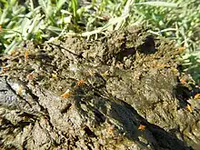 - les coprophages et nécrophages utilisent leur odorat ou la chémotaxie pour atteindre leur cible. Or un air humide porte les odeurs d'excréments bien plus loin qu'un air très sec, et l'excrément est bien plus odorant humide que déshydraté. Dans un cas signalé, les bouses traitées n'ont pas attiré de bousiers, mais l'auteur a souligné que dans cas, l'« appâtage » a eu lieu lors d'une grave sécheresse[52].