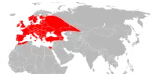 Elle est largement distribuée en Europe, de l'Afrique du Nord à la Scandinavie et de l'Irlande à la Russie centrale[8],[9] (avec d'importantes variations spatiotemporelles par exemple en Irlande[10], au Royaume-Uni[11], et en Suisse[12]).