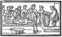 - ↑ Émile Forgue, « La Chirurgie jusqu'à la fin du XVIIIe siècle », dans Jacques Poulet (dir.), Jean-Charles Sournia (dir.) et al., Histoire de la médecine, de la pharmacie, de l'art dentaire et de l'art vétérinaire, t. 3, Paris, Albin Michel, , p. 192-194.
