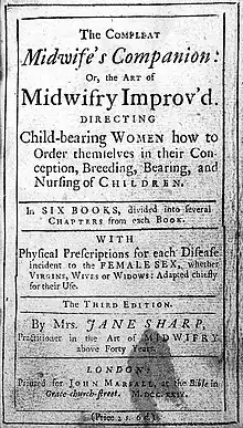 - ↑ (en) Jane Sharp, The compleat midwife's companion, 1724 (lire en ligne).