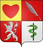 Écartelé : au I, d'or au cœur de gueules ; au II, du quartier des Barons tirés des Corps Savants ; au III, de gueules au lion d'argent ; au, IV d'argent au serpent de sinople enlaçant une cotice alésée de sable (bâton d'Esculape) en pal.[7] |