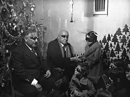 Le ministre de l'Hygiène, Georges Leredu (au centre), distribuant des cadeaux de Noël aux enfants de l'Institut d'actinologie en 1933