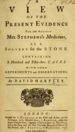 - ↑ (en) Edward L. Keyes, « The Joanna Stephens Medicines for the Stone », Bulletin of the New York Academy of Medicine, vol. 18, no 12, , p. 835 (ISSN 0028-7091, PMCID 1933931, lire en ligne, consulté le )