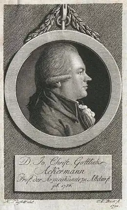 Johann Christian Gottlieb Ackermann est un médecin allemand. Né à Zeulenrode le , il est mort à Altdorf bei Nürnberg le .
