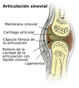 - une membrane synoviale interne qui sécrète le liquide synovial lubrifiant, absorbant les chocs et nourrissant l'articulation ;