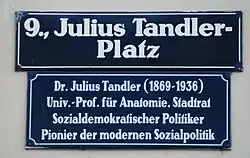 - ↑ La Kommission zur Prüfung der Wiener Straßennamen (voir (de) Noms de rues viennois controversés (Julius Tandler, p. 151))