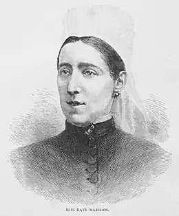 Kate Marsden, née à Edmonton, Londres est la fille de J.D. Marsden, notaire et de son épouse Sophie Mathilda Wellsted. À 16 ans, elle devint infirmière et travailla dans un hôpital de Londres [2]. Plus tard, elle occupa le poste d'infirmière-chef au Wellington Hospital [3]. En 1877, elle fut envoyée en Bulgarie, avec d'autres infirmières, dans le but de soigner les soldats russes blessés pendant le conflit avec la Turquie. L'altruisme et la dévotion dont elle fit preuve en travaillant pour la Croix rouge lui valurent une récompense de la part de l'impératrice Marie Fedorovna. Près de Sistov, elle rencontra apparemment deux personnes atteintes de la lèpre qui la persuadèrent que sa mission était de soigner les lépreux.