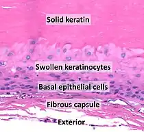 - Kératine solide éosinophile.