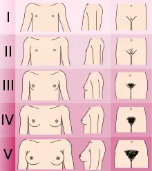 Pendant la puberté, l'augmentation des niveaux d'hormones modifie souvent de manière significative l'apparence des lèvres. Les petites lèvres deviennent plus élastiques, proéminentes et ridées. Les grandes lèvres retrouvent de la graisse et commencent à faire pousser les poils pubiens près de la fente pudendale. Les poils sont initialement clairsemés et raides mais deviennent progressivement plus foncés, denses et bouclés à mesure que la croissance se propage vers l'extérieur et vers le haut vers les cuisses et le pubis. À la fin de la puberté, les poils pubiens recouvrant les parties génitales finiront souvent par former une forme de triangle[4].