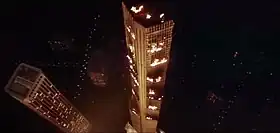 Au cours de l'inauguration, un court-circuit se produit dans un local technique au 81e étage, résultant d'un échauffement de câbles électriques non isolés et dont la cause est une installation électrique sous-dimensionnée pour un tel bâtiment (économie d'argent sur la construction par le promoteur, sans tenir compte des recommandations de l'architecte).