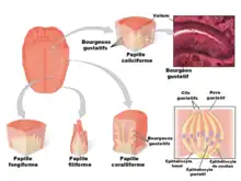 Chez l'humain, les papilles gustatives permettent de reconnaître les différentes saveurs : sucré, salé, amer, l'umami et l'acide. Des papilles gustatives recouvrent la langue et sont responsables de la perception des goûts. Les papilles se classent en quatre sortes :