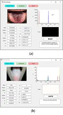 En 2024, des chercheurs australiens et irakiens ont formé une intelligence artificielle par apprentissage automatique avec six algorithmes : Naïve Bayes (NB), Support Vector Machine (SVM), k-plus proches voisins (KNN), arbres de décision (DT), forêt aléatoire (RF) et Extreme Gradient Boost (XGBoost), pour qu'elle prédise certaines maladies d'après des images de langues[25]. Selon cette première étude, à partir d'image de langues faites avec une simple Webcam, le système d'intelligence artificielle a posé le bon diagnostic dans 96,6 % des cas en moyenne (98,71 % avec l'algorithme XGBoost, et avec 91,43 % avec Naive Bayes)[26]. Selon les auteurs, la précision pourrait encore être améliorée par une meilleure maitrise de l'éclairage et des reflets sur la lentille de la caméra[25].