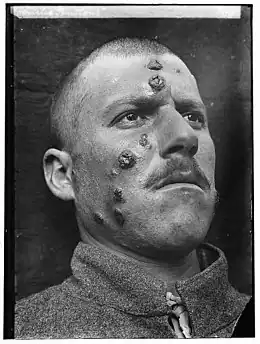 | Symptômes | Ulcère, ulcère de la bouche, fièvre, splénomégalie, anémie et hépatomégalie |