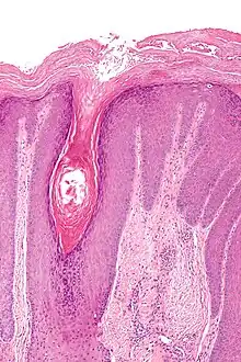 Le diagnostic repose d'une part sur les symptômes ( prurit , lichénification et évolution chronique ) et d'autre part sur l' histologie .Dans le cadre d'une biopsie, un échantillon de tissu est prélevé dans la zone modifiée et examiné histologiquement. Le lichen simplex chronicus peut être diagnostiqué de manière fiable de cette manière. Les diagnostics différentiels possibles doivent être envisagés à l'avance (dermatite de contact , dermatite atopique ou lichen plan)[3] .
