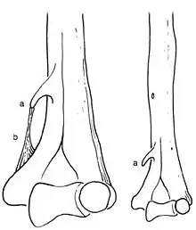 - ↑ « [Supracondylar process and supratrochlearforamen of the humerus: a case report and a review of the literature] », Morphologie, vol. 89, no 286, , p. 121–5 (PMID 16444940, DOI 10.1016/S1286-0115(05)83248-5)