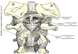 Le col de l'apophyse odontoïde est resserré là où il croise le ligament transverse, de sorte que ce ligament suffit seul à maintenir l'apophyse odontoïde en position même lorsque tous les autres ligaments ont été sectionnés[1].