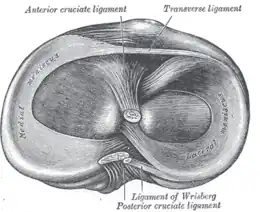 - « Ligament transverse du genou », sur le dictionnaire de l’Académie nationale de médecine