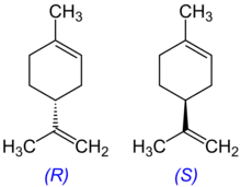 Ainsi, selon une assertion des années 1970 et souvent reprise par les textes éducatifs et plusieurs articles, le (R)-limonène possèderait une odeur d'orange tandis que le parfum du (S)-limonène est lui assimilé à celui du citron vert[16]. Cependant, les seuils olfactifs de ces deux isomères étant élevés, ceux-ci contribuent peu à l'odeur des agrumes. Le limonène est de même présent en grandes quantités dans certaines huiles essentielle qui n'ont pas une odeur d'agrumes, comme le céleri (concentration à 76%) pour l'énantiomère (R) et le pin (de 10% à 75%) pour l'énantiomère (S)[20]. Certains travaux de recherche concluent que le (S)-limonène possède une odeur plus proche du pin ou de la térébenthine[21].