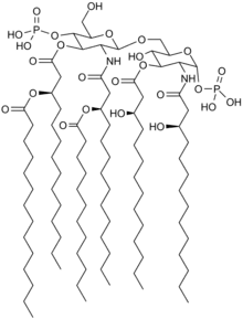 Le lipide A est un constituant lipidique d'une endotoxine responsable de la toxicité des bactéries à Gram négatif. Il forme la plus interne des trois régions de la molécule de lipopolysaccharide (LPS ou endotoxine) et sa nature hydrophobe lui permet d'ancrer le LPS dans la membrane externe[2]. Bien que ses effets toxiques puissent être particulièrement néfastes, la détection de lipide A par le système immunitaire humain peut s'avérer déterminante pour l'activation de la réponse immunitaire aux infections à Gram négatif et la réussite de cette réponse[3].