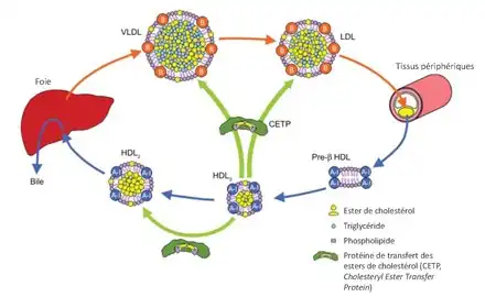 Les LDL (VLDL maturés) permettent de transporter diverses substances (triglycérides, cholestérol, vitamines liposolubles A, D, E, K) jusqu'aux organes périphériques. Ce cholestérol sera recapté par la suite par les HDL maturés.