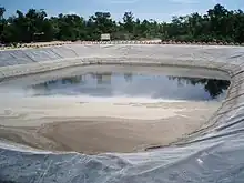 Après le captage, les lixiviats sont stockés. Le conditionnement peut notamment être assuré par une solution de stockage de liquide (ex. : citerne souple), mais plus généralement dans des bassins membranés.