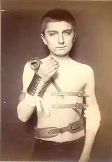 Pour les fractures, il utilise de temps en temps l'ostéosynthèse per cutanée avec une sorte de poinçon ou vrille, des broches, et des fixateurs externes. Certaines radiographies de Destot[6], découvertes par le professeur Fischer, montrent des ostéosynthèses de 1870 à 1900.