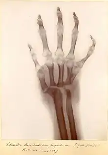 ![]() La radiographie correspondant (notez qu'il manque le carpe!) |