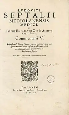 Ludovico Settala ou Septalius est un médecin italien de la Renaissance, né à Milan le et mort dans la même ville le .