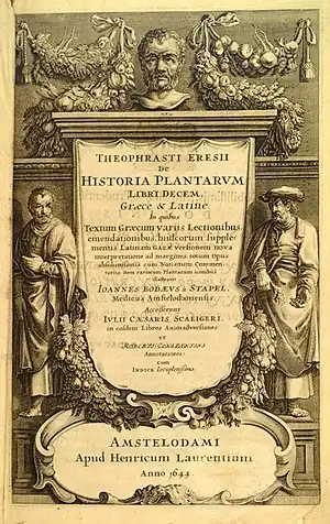 Il jugeait que le niveau de perfection d'une créature se traduisait dans son apparence, mais n’était pas prédéterminé par cette apparence. Pourtant, un autre aspect de sa biologie divise les âmes en trois groupes : une âme végétative, responsable de la reproduction et de la croissance, une âme sensible, responsable de la mobilité et de la sensation, et une âme raisonnable, capable de pensée et de réflexion. Il a attribué la première seulement aux plantes, les deux premières aux animaux et toutes les trois à l'homme[24]. Aristote, contrairement aux philosophes précédents, comme les Égyptiens, a placé l'âme rationnelle dans le cœur, plutôt que dans le cerveau[25]. À noter la distinction faite par Aristote entre la sensation et la pensée, qui allait généralement contre les idées des philosophes antérieurs, à l'exception d’Alcméon de Crotone[26]. Théophraste, le successeur d’Aristote au Lycée a écrit une série de livres sur la botanique la – Historia plantarum - qui demeurent, même au Moyen Âge, la contribution à la botanique la plus importante de l'Antiquité. Beaucoup de noms inventés par Théophraste sont encore utilisés dans les temps modernes, tels que carpos pour les fruits et pericarpion pour l’enveloppe des graines. Plutôt que de se concentrer sur les causes formelles, comme Aristote l'avait fait, Théophraste a proposé un système mécaniste, établissant des analogies entre les processus naturels et artificiels et s'appuyant sur le concept d’Aristote de la cause efficiente. Théophraste a également reconnu le rôle du sexe dans la reproduction de certaines plantes supérieures, bien que cette dernière découverte ait été perdue dans les époques postérieures[27],[28]. Les concepts biologiques ou téléologiques d'Aristote et Théophraste, ainsi que l’accent mis par eux sur une série d’axiomes plutôt que sur l'observation empirique, ont eu un impact qu’on ne peut ignorer sur la médecine hippocratique puis la médecine occidentale.