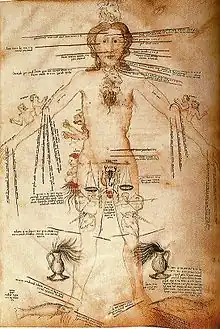 De ses origines jusqu'à la fin du XVe siècle, la médecine scholastique n'est pas restée monolithique. Plusieurs courants la traversent, dont ceux influencés par des philosophes anglais tels que Roger Bacon ou Guillaume d'Ockham. En médecine, des auteurs réévaluent le rapport entre la raison et l'expérience (Jean de Saint Amand, Gentile da Foligno…), ou entre la théorie doctrina cognitiva et la pratique doctrina operativa (Arnaud de Villeneuve), d'autres font appel à la dissection anatomique (Mondino de' Liuzzi)[51]. Il existe aussi toute une littérature de practica (pratique médicale) et de concilia (étude de cas avec conseil personnalisé)[52].