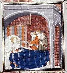 La maladie est donc ambivalente, le malade incarne le péché, mais sa maladie est aussi médecine, car le malade reproduit l'image du Christ souffrant et nécessiteux. La maladie du corps, par ses souffrances, peut apporter le salut de l'âme du malade (vertu de patientia), mais aussi de celle du bienfaiteur qui porte assistance. L'Église est le trait d'union entre le bienfaiteur et le grand nombre de nécessiteux[17]. Ces notions évoluent, se modifient ou s'affinent à partir du XIIe siècle[18].