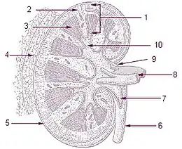 - Coupe longitudinale de rein vue droite