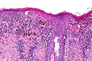 La phase de croissance horizontale intra épidermique dure plusieurs années puis les cellules franchissent la membrane basale et il s'ensuit une phase de croissance verticale intra dermique[5].