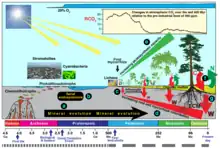 Rôle évolutif et écologique majeur des bactéries et des mycorhizes dans le processus de biométéorisation[8] et de mobilisation du fer, deuxième élément le plus abondant dans le globe terrestre et septième élément le plus abondant dans le monde vivant[9].