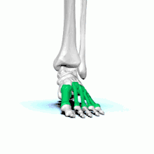Chaque métatarsien se compose de 3 parties : la métaphyse proximale ou base, la diaphyse ou corps et la métaphyse distale ou tête.