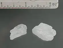 Pure, la méthamphétamine se présente sous une forme solide cristalline (d'où sa dénomination de « crystal »), incolore et inodore, qui peut rappeler du verre pilé ou de la glace (d'où sa dénomination de « ice »)[4]. Elle se consomme généralement fumée dans une pipe, ou prisée.