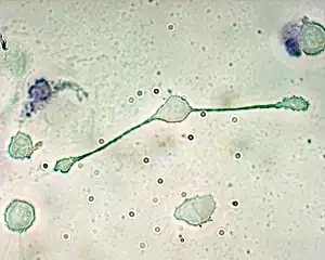 Un macrophage de souris avec deux grands prolongements cytoplasmiques.