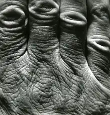La main contient de nombreux petits os, tendons et un système tendineux, musculaire et vasculaire complexe et soumis à de nombreux micro-traumatismes (la main est fréquemment touchée par les problèmes articulaires (tendinites, arthrites, rhumatisme, etc.). Le travail manuel est une cause fréquente d'hyperkératose (durcissement de la peau) de la paume des mains[12].