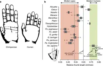 - 1 2 (en) Sergio Almécija, Jeroen B. Smaers & William L. Jungers, « The evolution of human and ape hand proportions », Nature Communications, vol. 6, no 1, , p. 7717 (DOI 10.1038/ncomms8717).